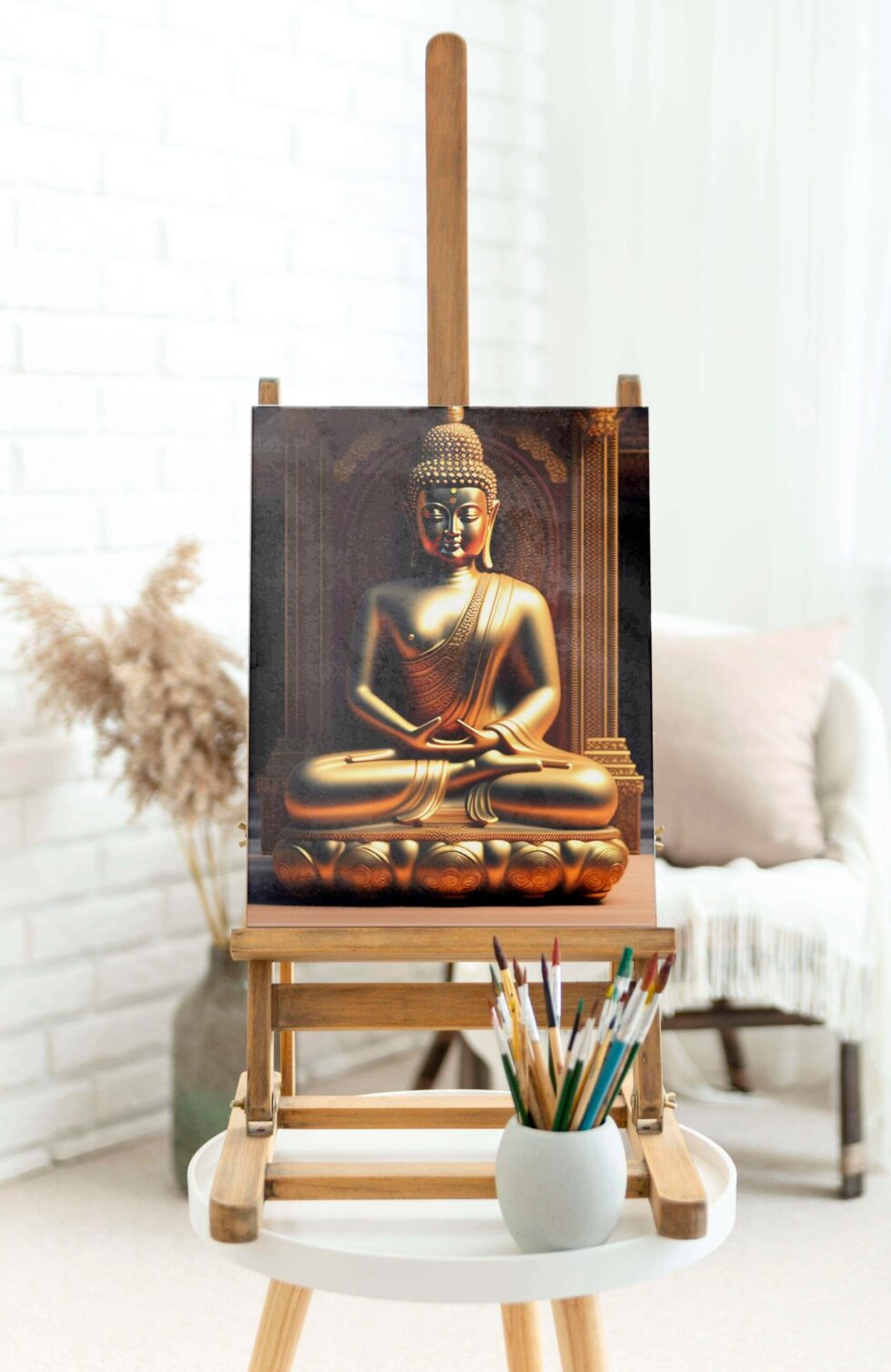 Transform your space into a sanctuary of tranquility with our exquisite Buddha wall paintings. Crafted with meticulous detail and imbued with spiritual serenity, each piece radiates peace and harmony. Elevate your home decor with these timeless artworks, perfect for creating a serene ambiance in any room. Explore our collection and invite the essence of enlightenment into your living space today The canvas is carefully stretched over a durable wooden frame, creating a gallery-quality finish that adds a touch of elegance to any room. Whether you’re looking for a Buddha framed painting for wall or a Buddha big wall painting with frame